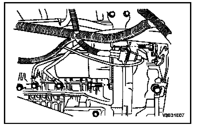 1. Install the starter-to-engine block mounting bolt and the transmission-to-starter mounting bolt.