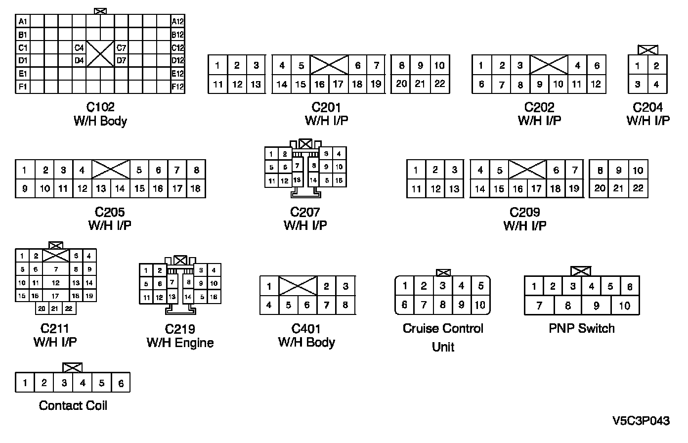 CONNECTOR IDENTIFICATION SYMBOL AND PIN NUMBER POSITION