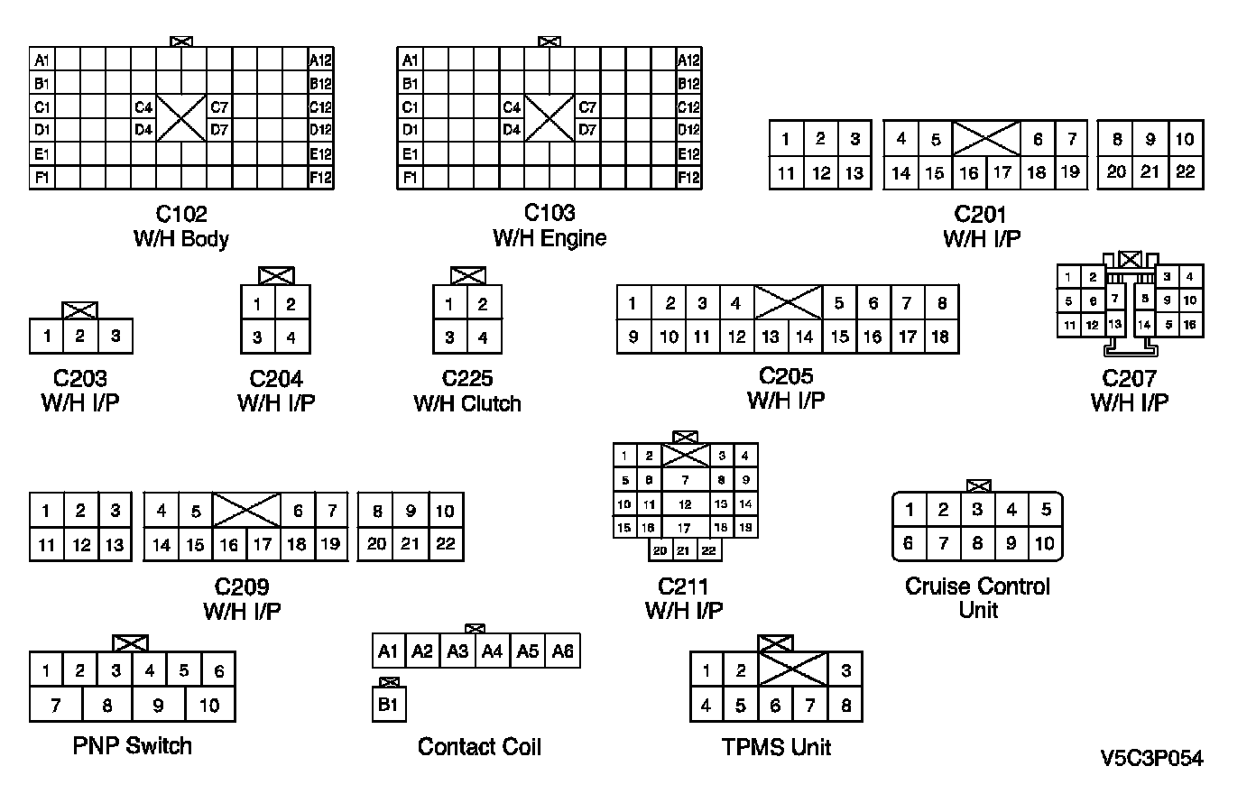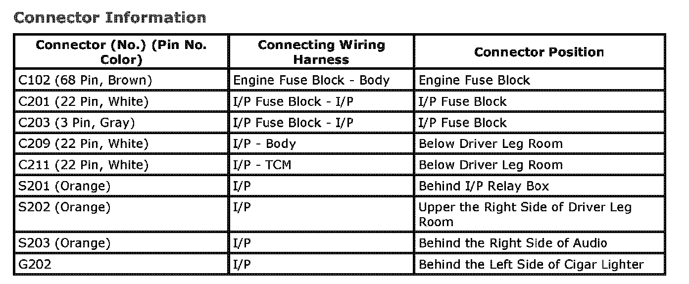 CONNECTOR IDENTIFICATION SYMBOL AND PIN NUMBER POSITION