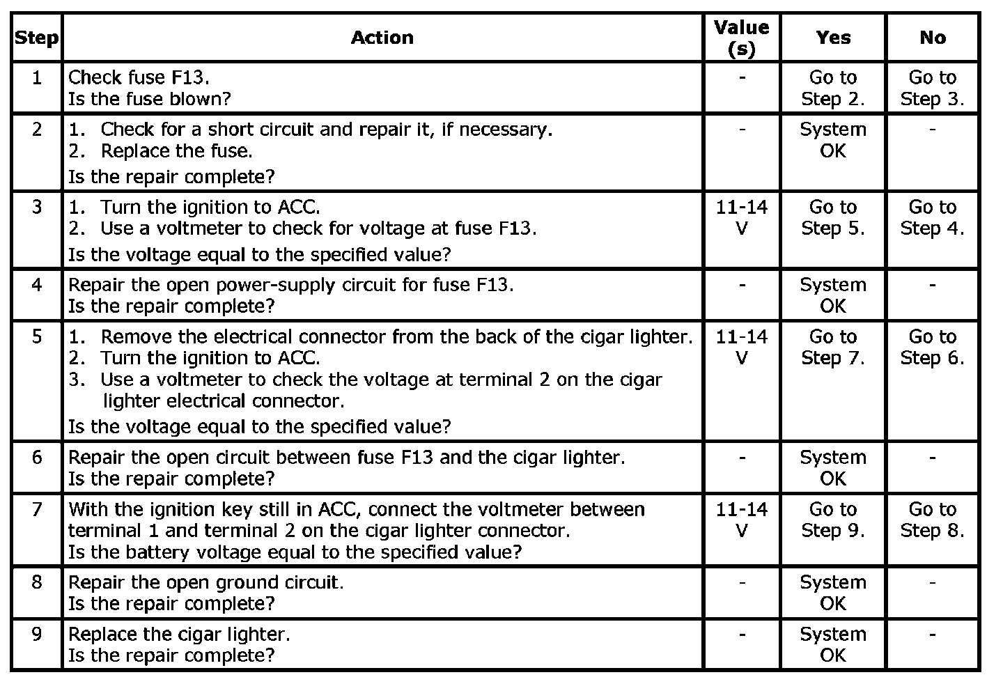 Cigar Lighter Inoperative: