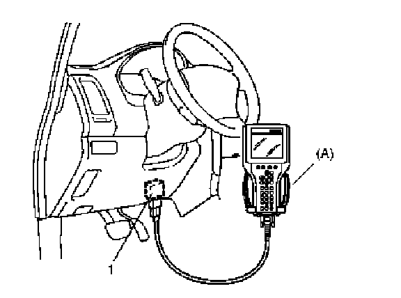 1. Connect SUZUKI scan tool to data link connector (DLC) (1) located on underside of instrument panel at driver's seat side.