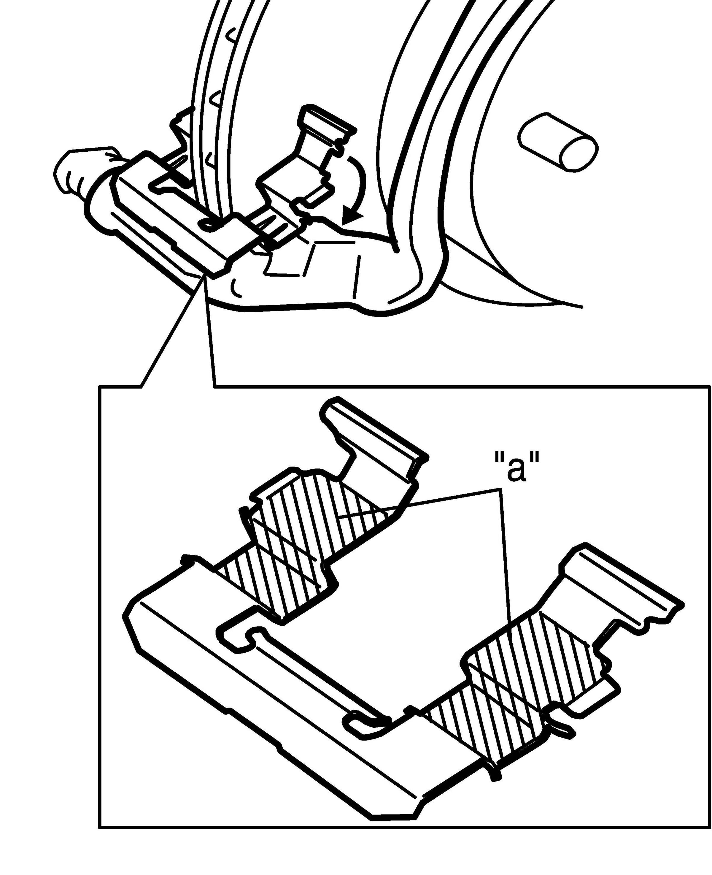 1. Apply small amount of pad grease "a" (included in spare parts) to pad spring and set brake pad spring as shown in figure.