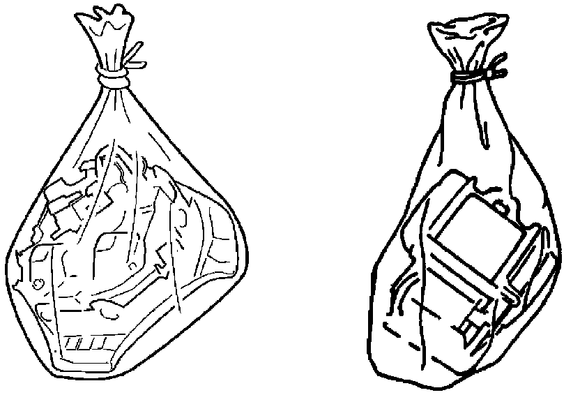 ^ When disposing of the deployed air bag (inflator) module and the activated seat belt pretensioner, be sure to seal it in a vinyl bag.
