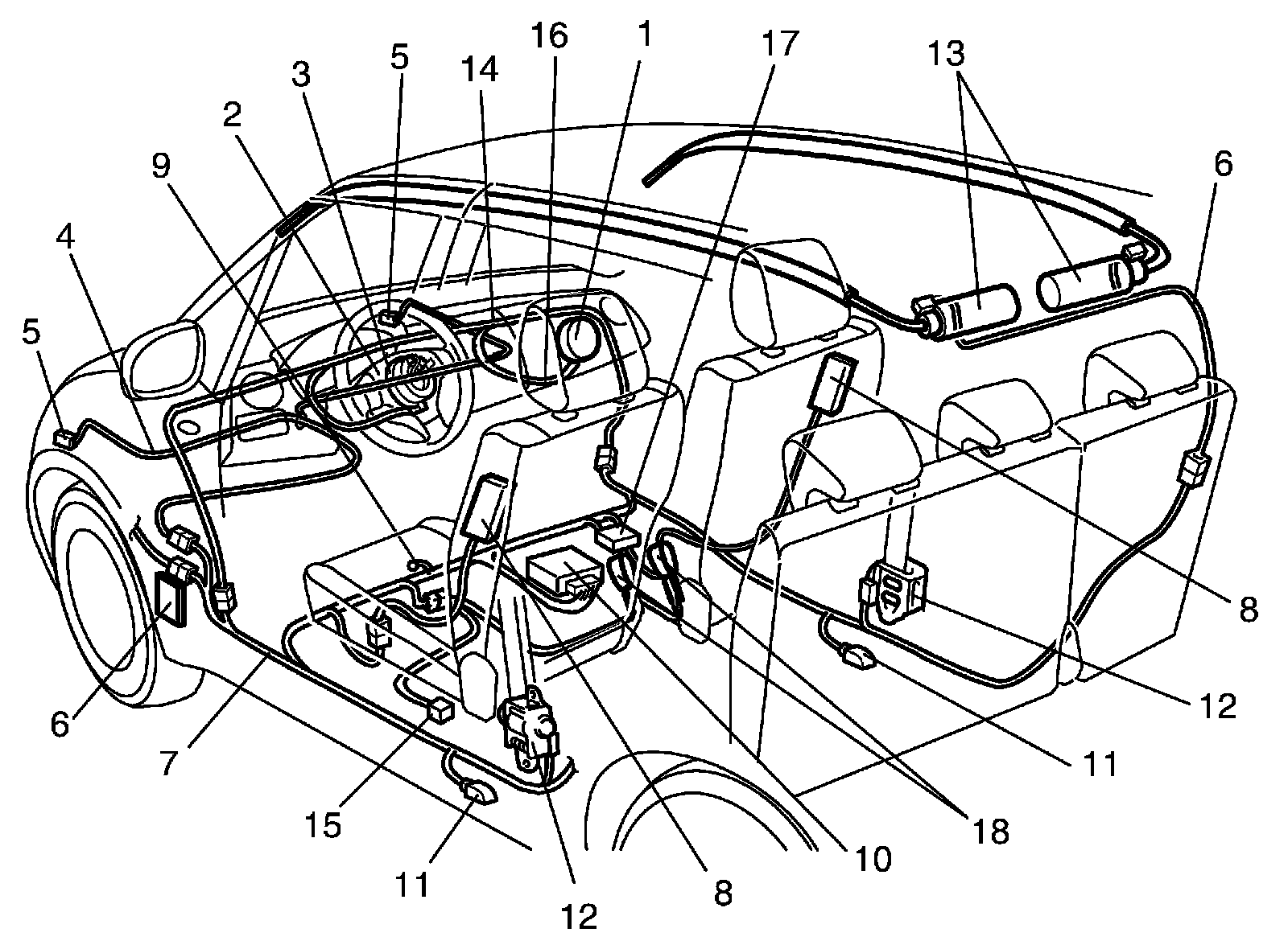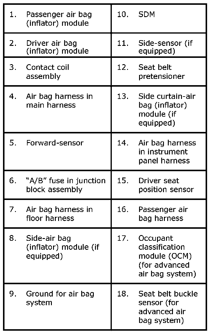 ^ When troubleshooting air bag system, be sure to follow Air Bag Diagnostic System Check:Except advanced Air Bag or Air Bag Diagnostic System Check:Advanced Air Bag. Bypassing these procedures may result in extended diagnostic time, incorrect diagnosis, and incorrect parts replacement.