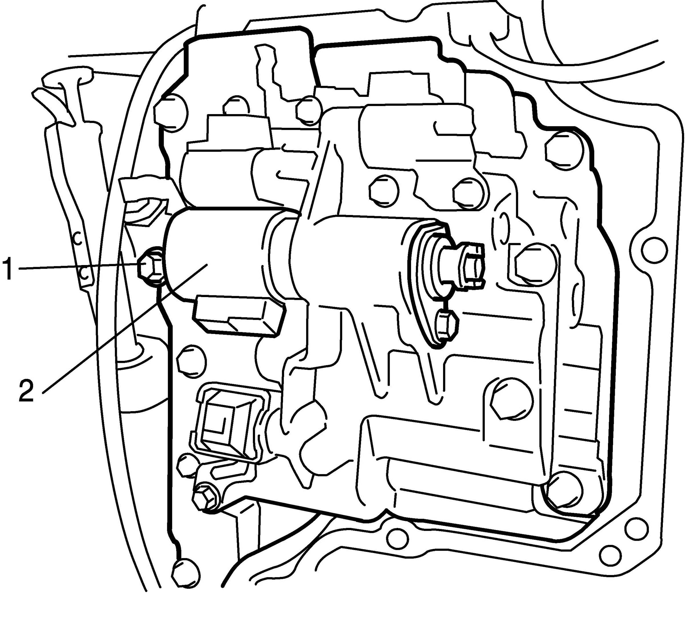 6. Remove pressure control solenoid valve (2) after removing bolt (1).