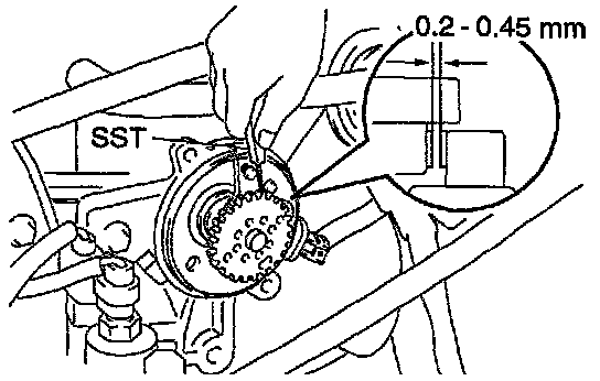 - Using SST, measure the air gap between the signal rotor and pickup coil projection. SST 09240-00020