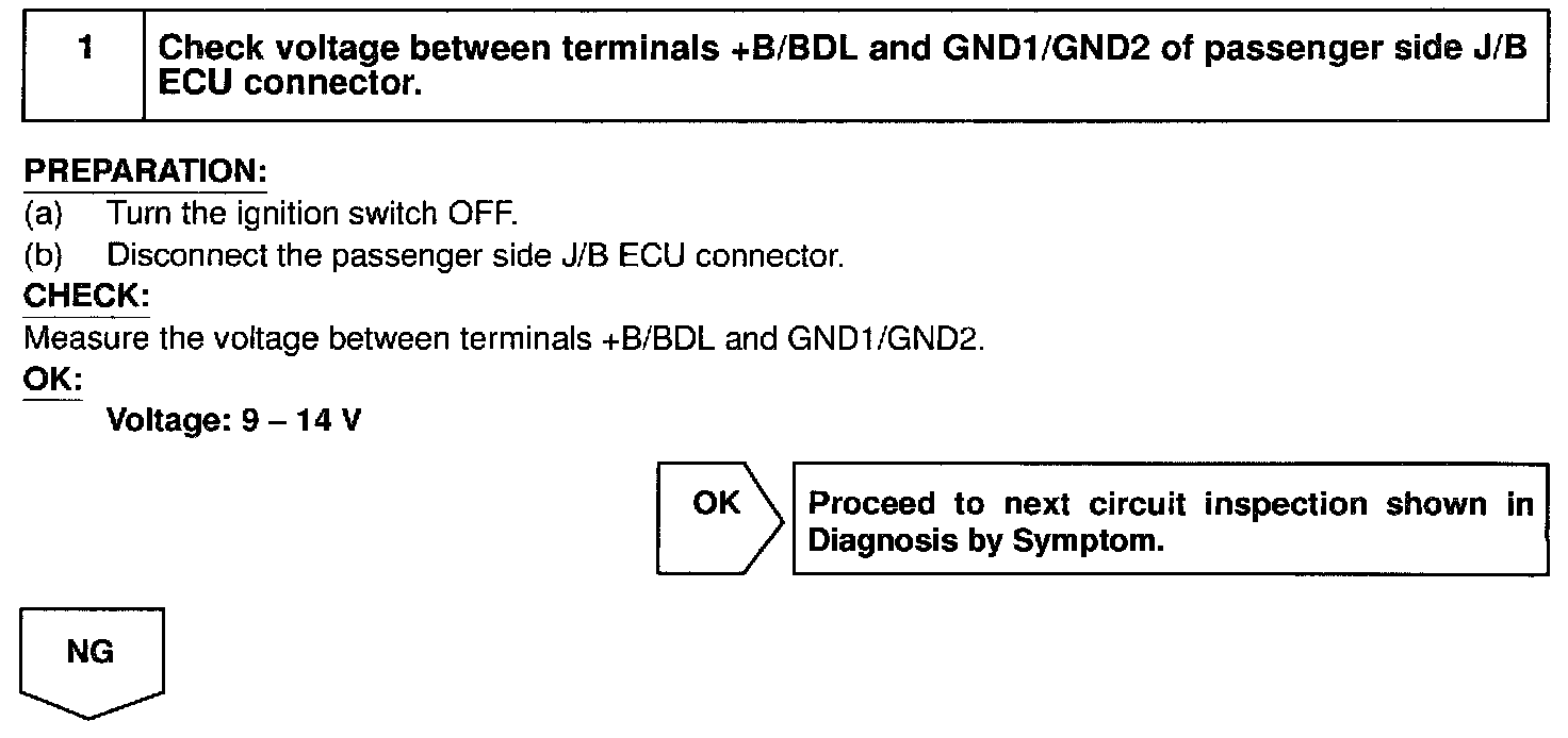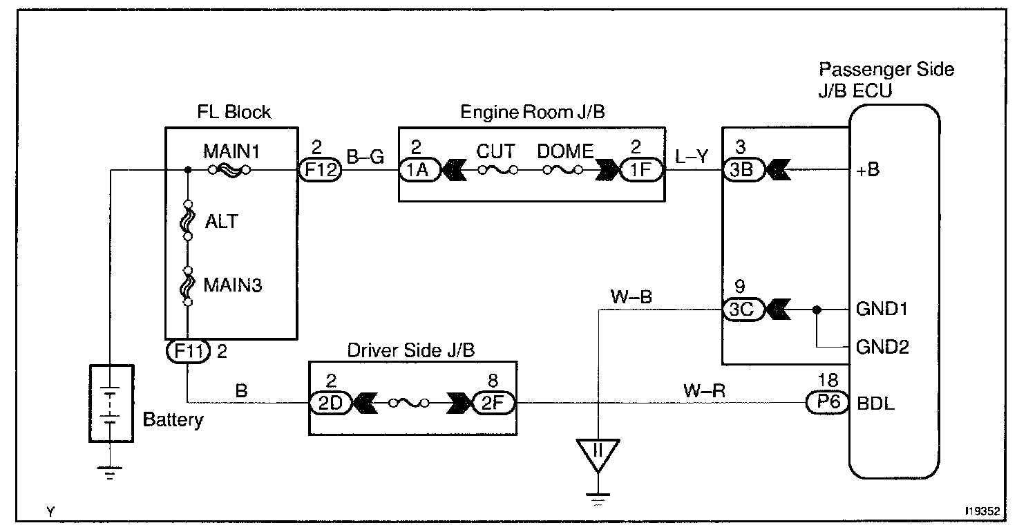 This circuit provides power to operate the passenger side J/B ECU.