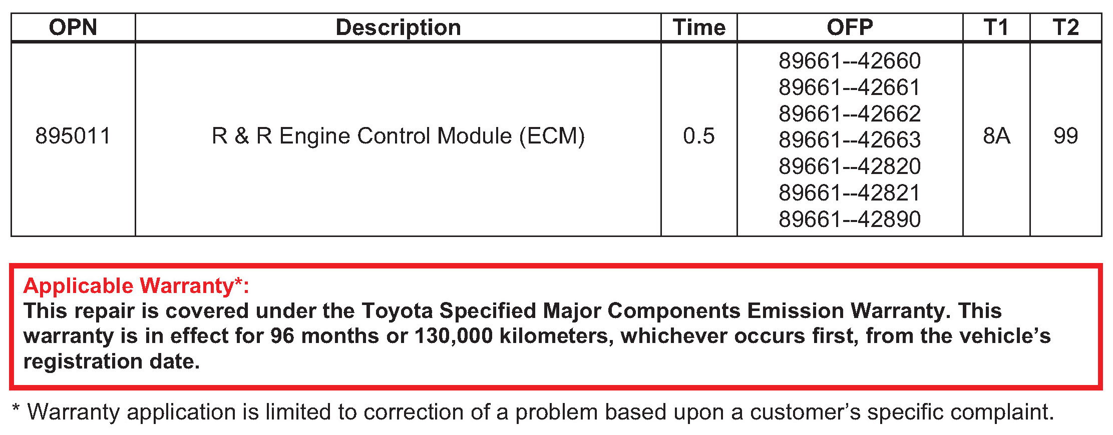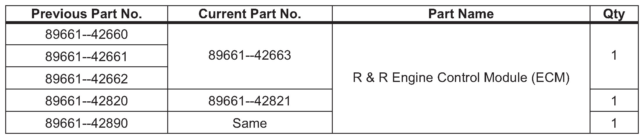 1. Replace the ECM (PCM). Refer to ETAS, 2001 -- 2003 model year RAV4 Repair Manual: SFI: Engine Control Module (ECM): Components.