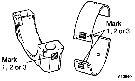 HINT: If replacing a bearing, replace it with one having the same number as marked on the connecting rod. There are 3 sizes of standard bearings, marked "1", "2" and "3" accordingly.
