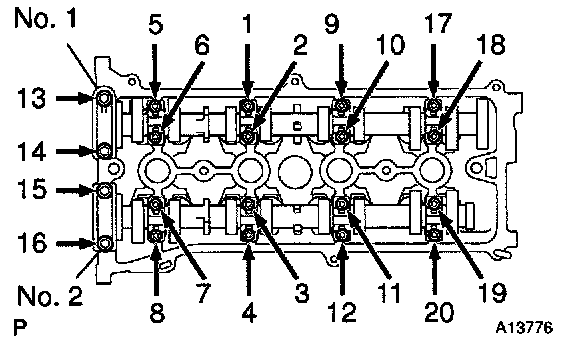 Camshaft Bearing Cap Bolt Removal Sequence: