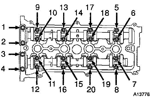 Camshaft Bearing Cap Bolt Torque Sequence: