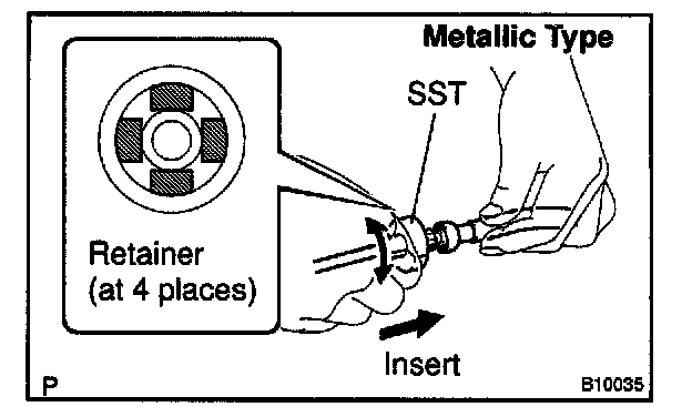 3. Turn the SST, align the retainers inside the connector with the SST chamfered parts and insert the SST into the connector.