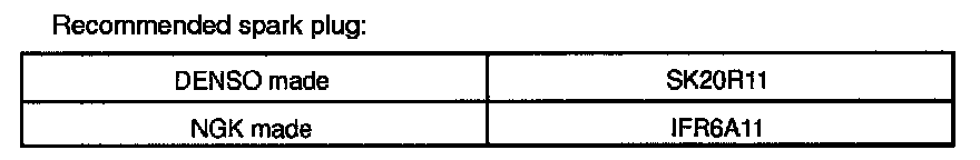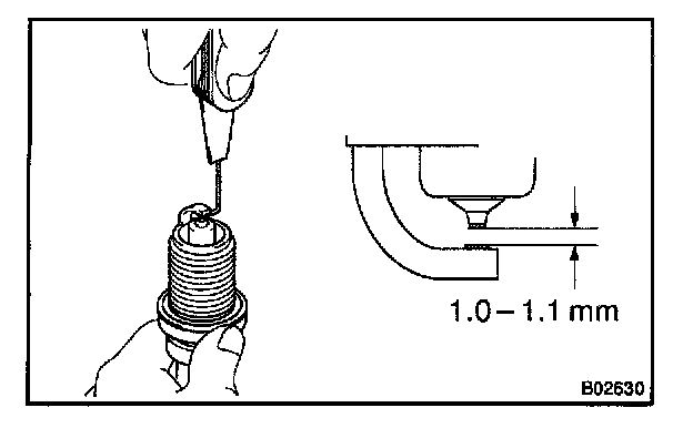 Correct electrode gap for new spark plug: 1.0 - 1.1 mm (0.039 - 0.043 in.)