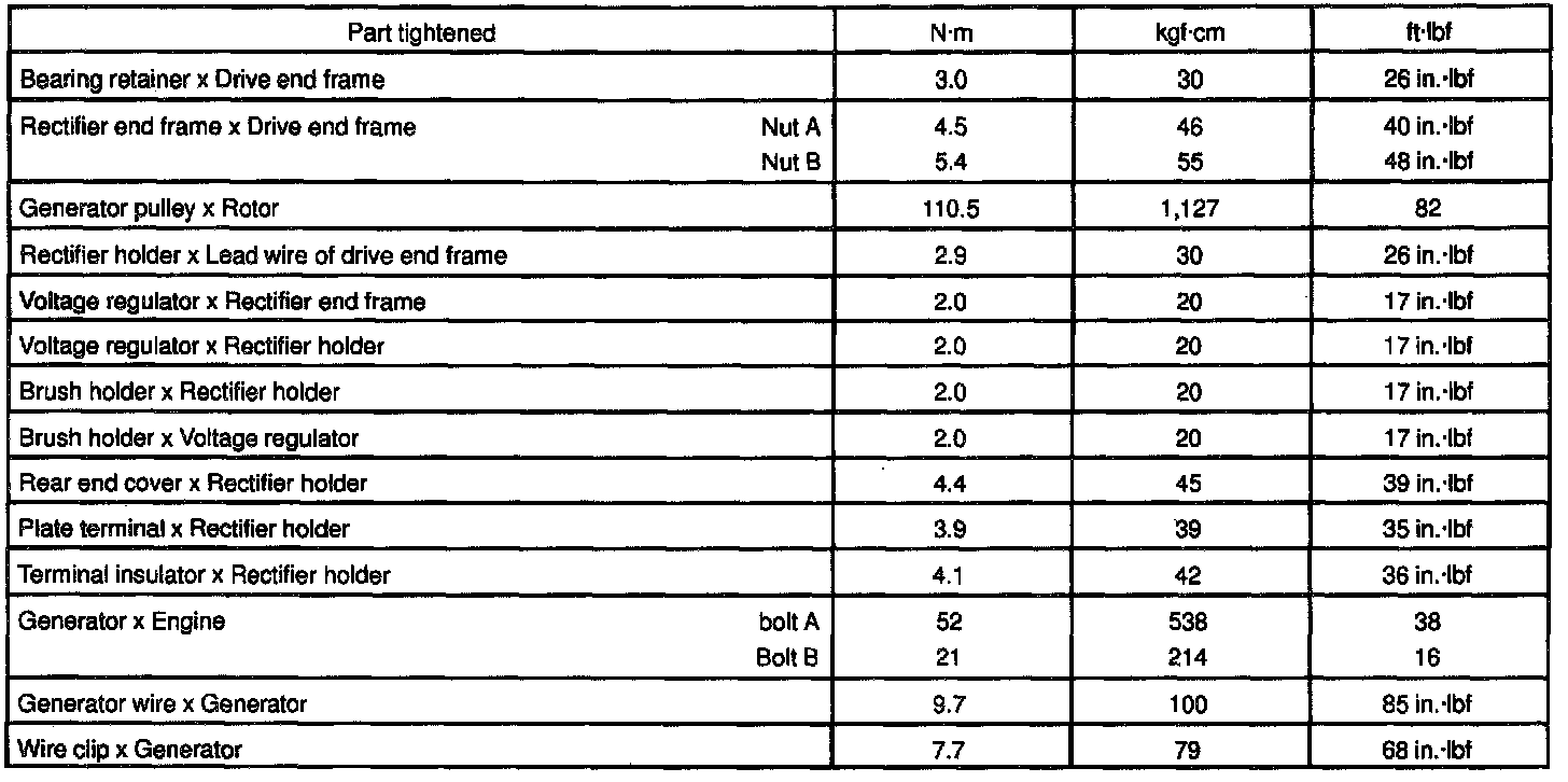 TORQUE SPECIFICATION: