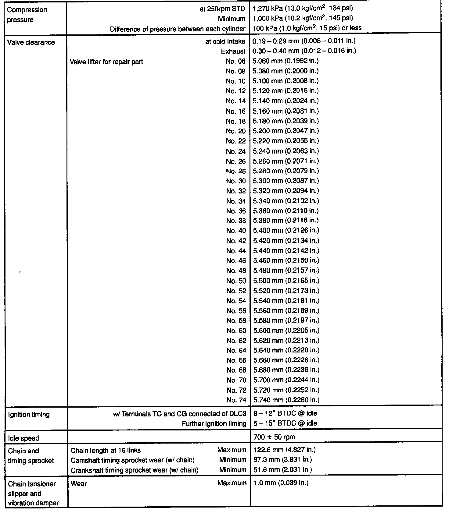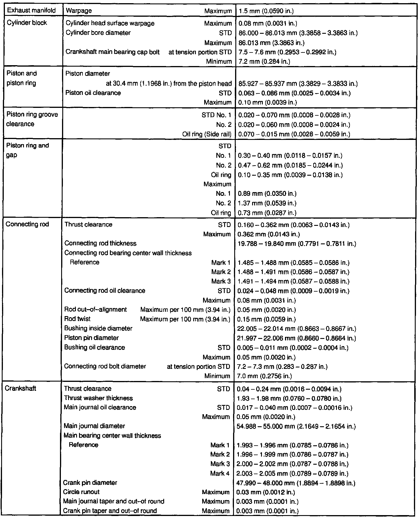 ENGINE MECHANICAL SERVICE DATA: