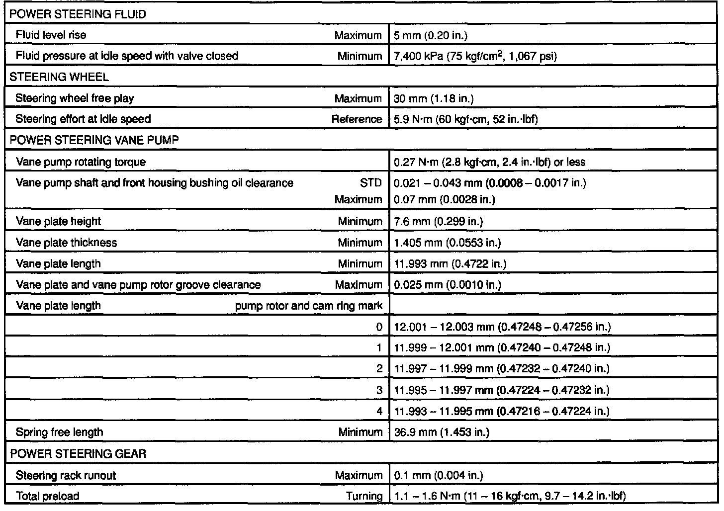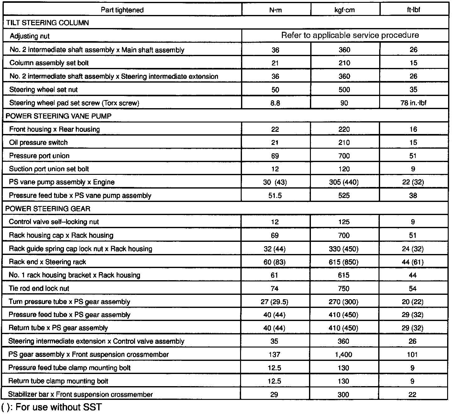 TORQUE SPECIFICATION: