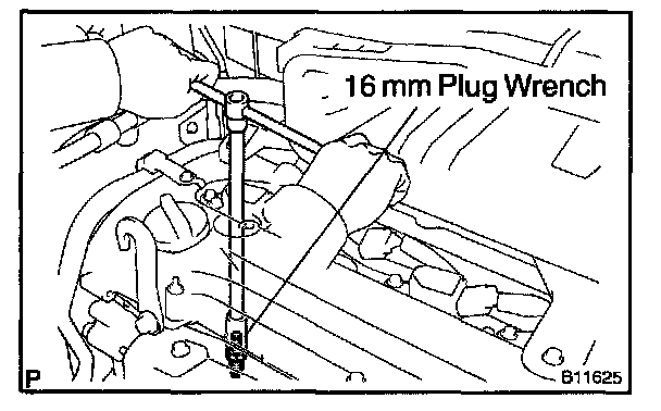 d. Using a 16 mm plug wrench, remove the spark plugs.