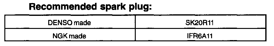 Maximum electrode gap for used spark plug: 1.3 mm (0.047 in.)