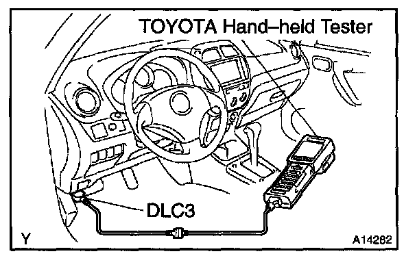 4. Connect the TOYOTA hand-held tester to the DLC3 at the lower of the instrument panel.