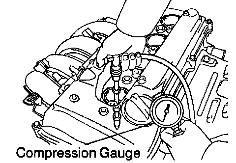 e If the cylinder compression in one more cylinders is low, pour a small amount of engine oil into the cylinder through the spark plug hole and repeat steps a through c for cylinders with low compression.