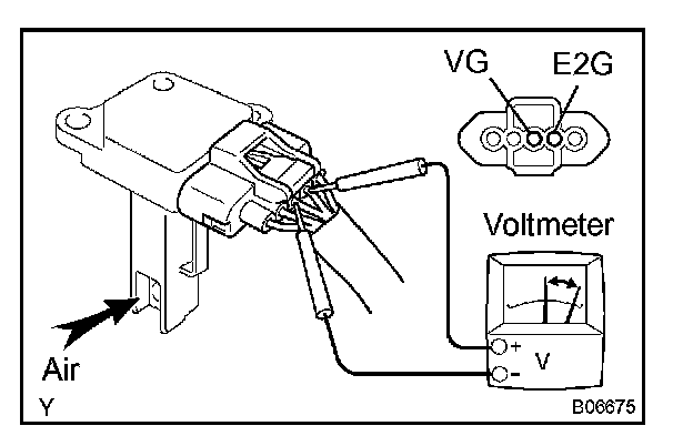 5. Blow air into the MAF meter, and check that the voltage fluctuates.
