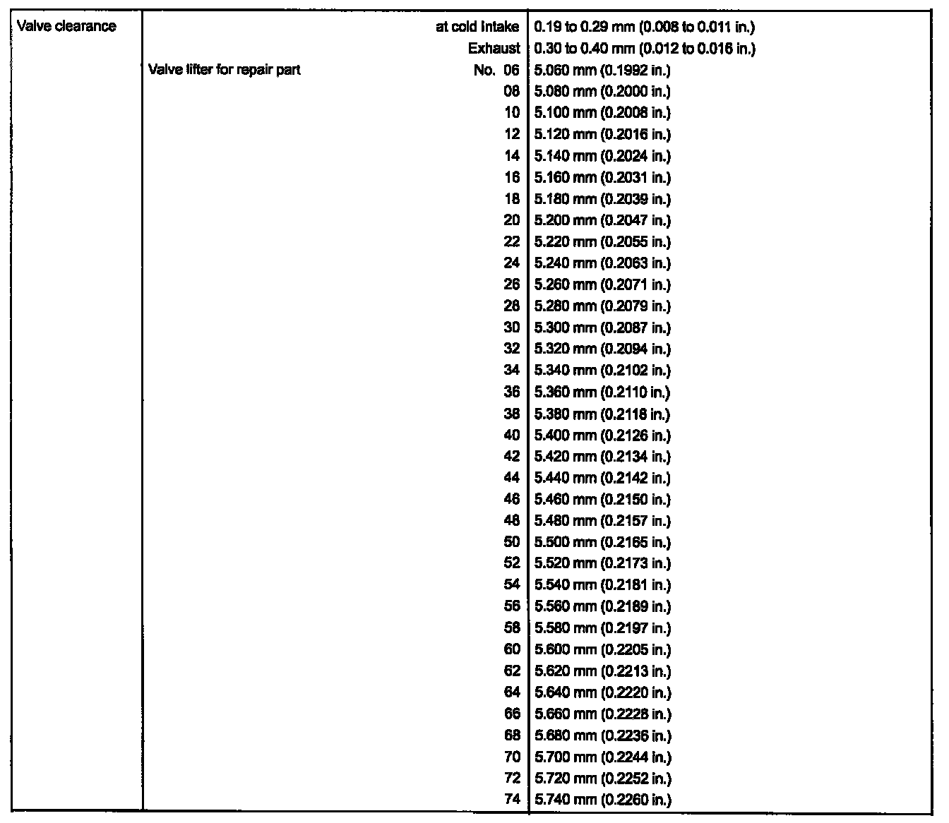VALVES AND VALVE CLEARANCE