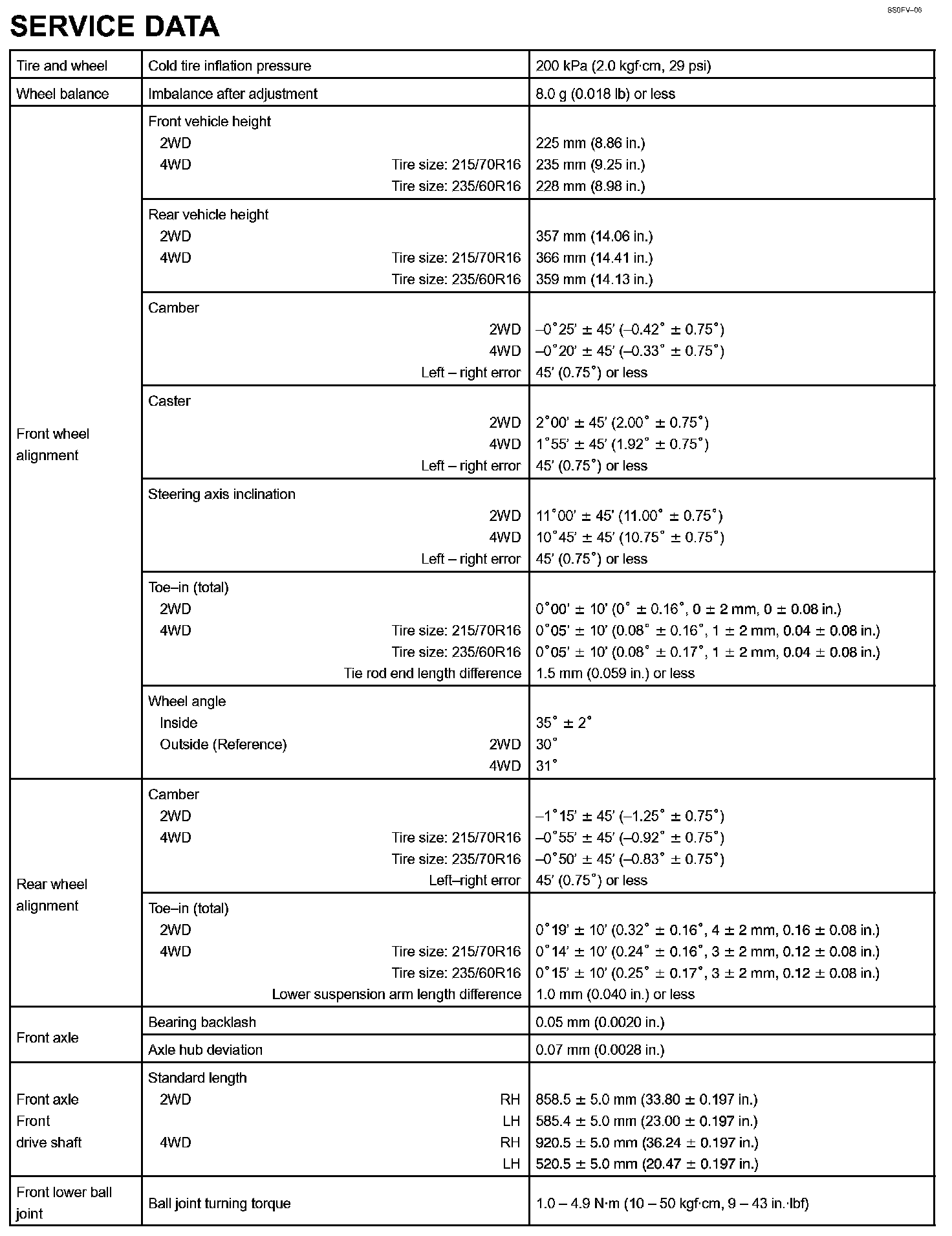 Suspension And Axle - Service Data Part 2: