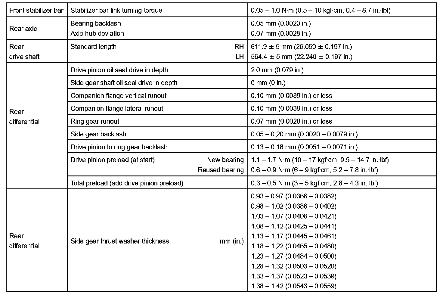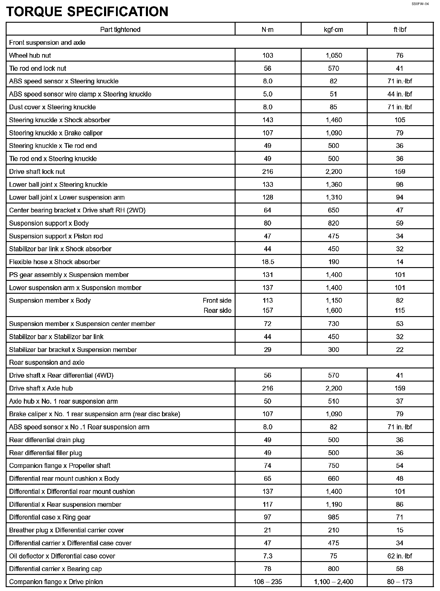 Suspension And Axle - Torque Specification Part 1: