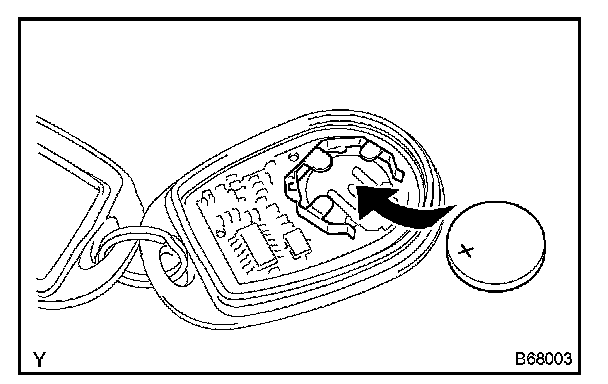 a. Install a new battery (lithium battery) with the positive (+) side up, as shown in the illustration.