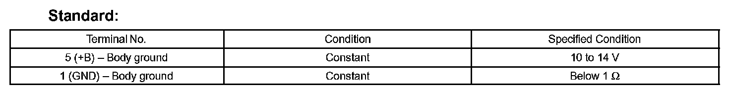 c. Reconnect the connector and check the voltage between the terminal and body ground.