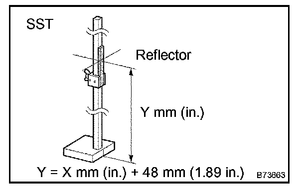 2. Adjust the center height of the reflector 48 mm (1.89 in.) higher than the center of the luminous portion.