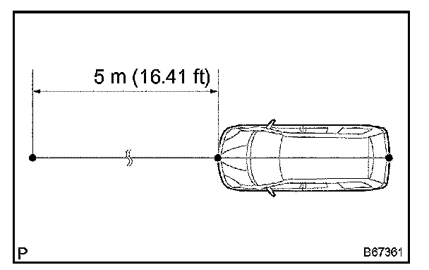 - Perform measurement indoors on a level ground and in front of a blank wall. Park the vehicle at least 9 m (29.53 ft) from the wall. When performing adjustment outdoors, make sure that it is not raining or snowing.