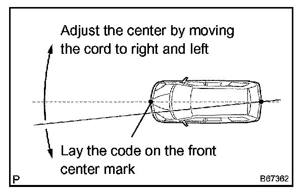 3. From the center (center of the emblem) of the front and rear bumpers, hang down the sharp-pointed weight and mark the center points (both front and rear) of the vehicle on the ground.
