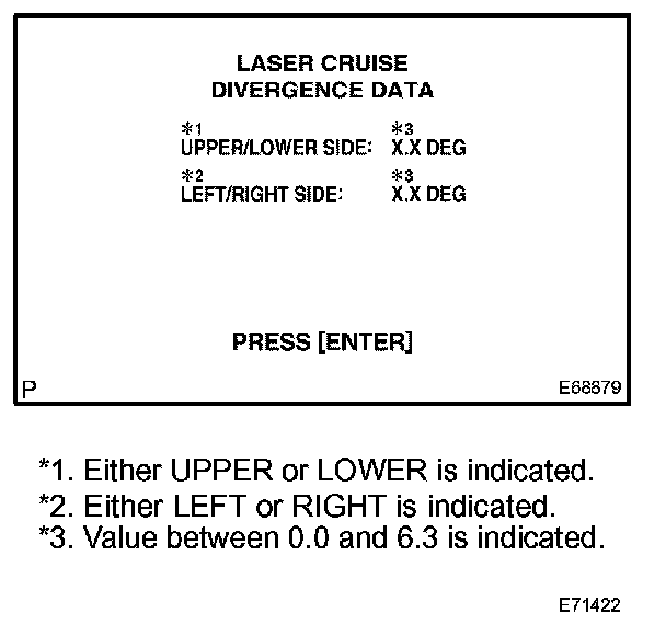 - Pressing "ENTER" will make the ECM transfer to BEAM AXIS ADJUSTMENT MODE.