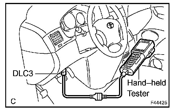 INPUT SIGNAL CHECK (Using hand-held tester)a. Connect the hand-held tester to DLC3