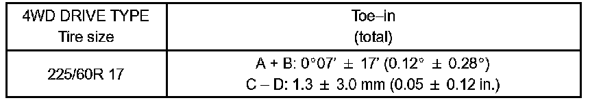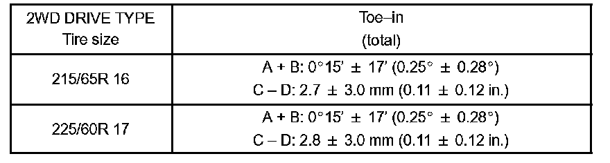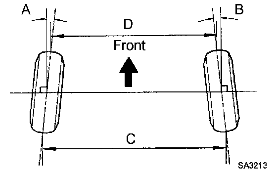 If the toe-in is not within the specified value, inspect the suspension parts and replace them if necessary.