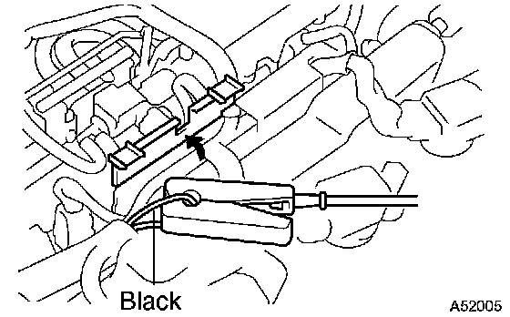 3. Pull out the wire harness as shown in the illustration. Connect the clip of the timing light to the engine.