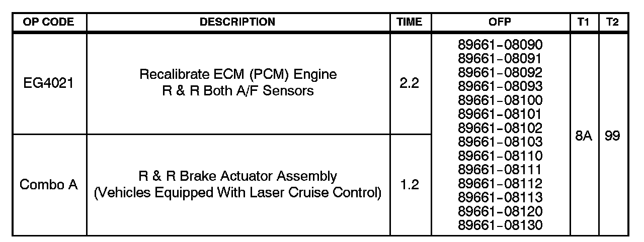 ^ A 2005 model year Brake Actuator Assembly must be installed on vehicles equipped with laser cruise control due to the use of 2005 model year software in the new ECM/PCM calibration