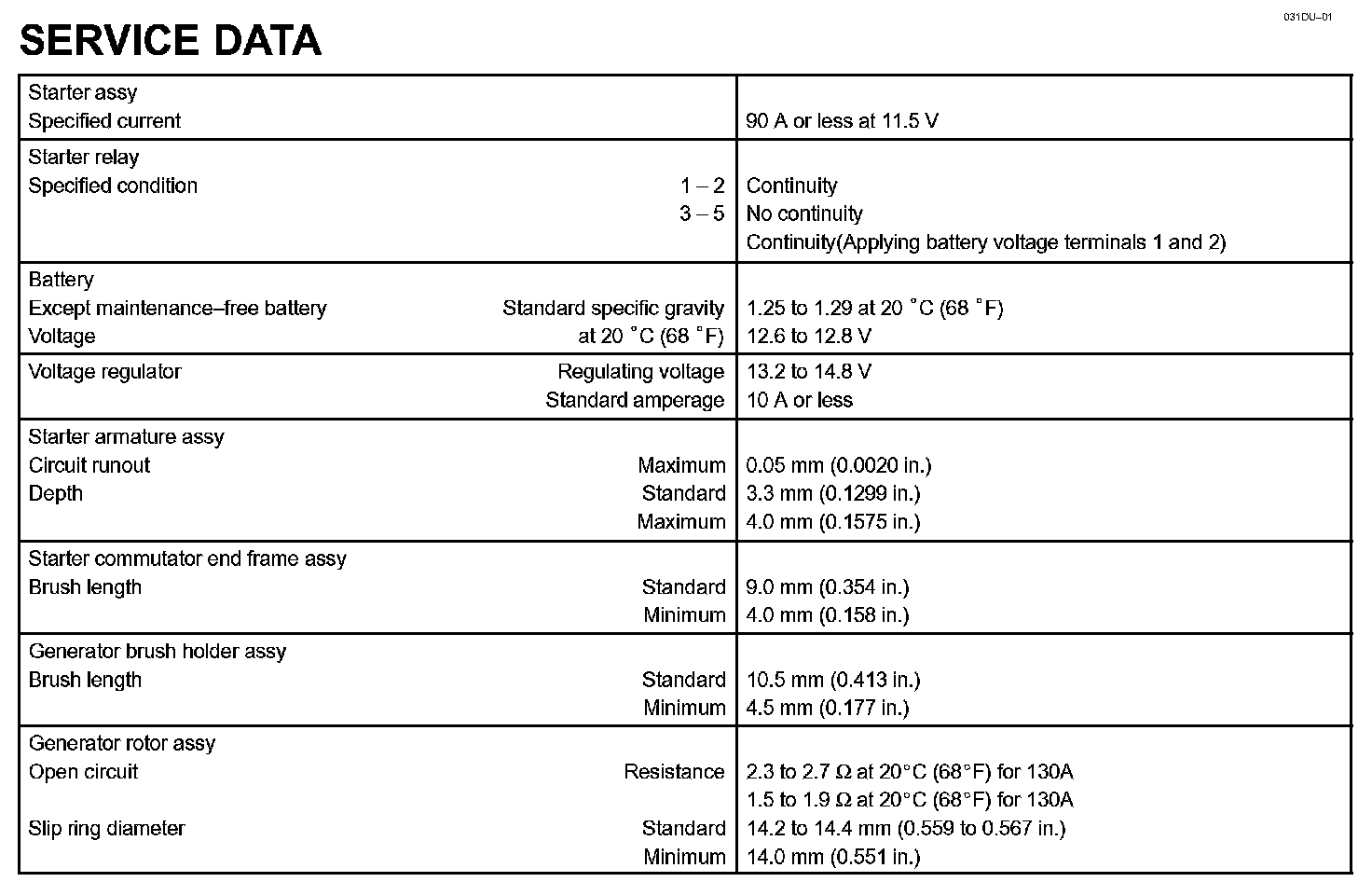 Starting & Charging - Service Data: