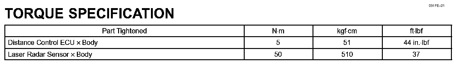 Cruise Control - Torque Specification: