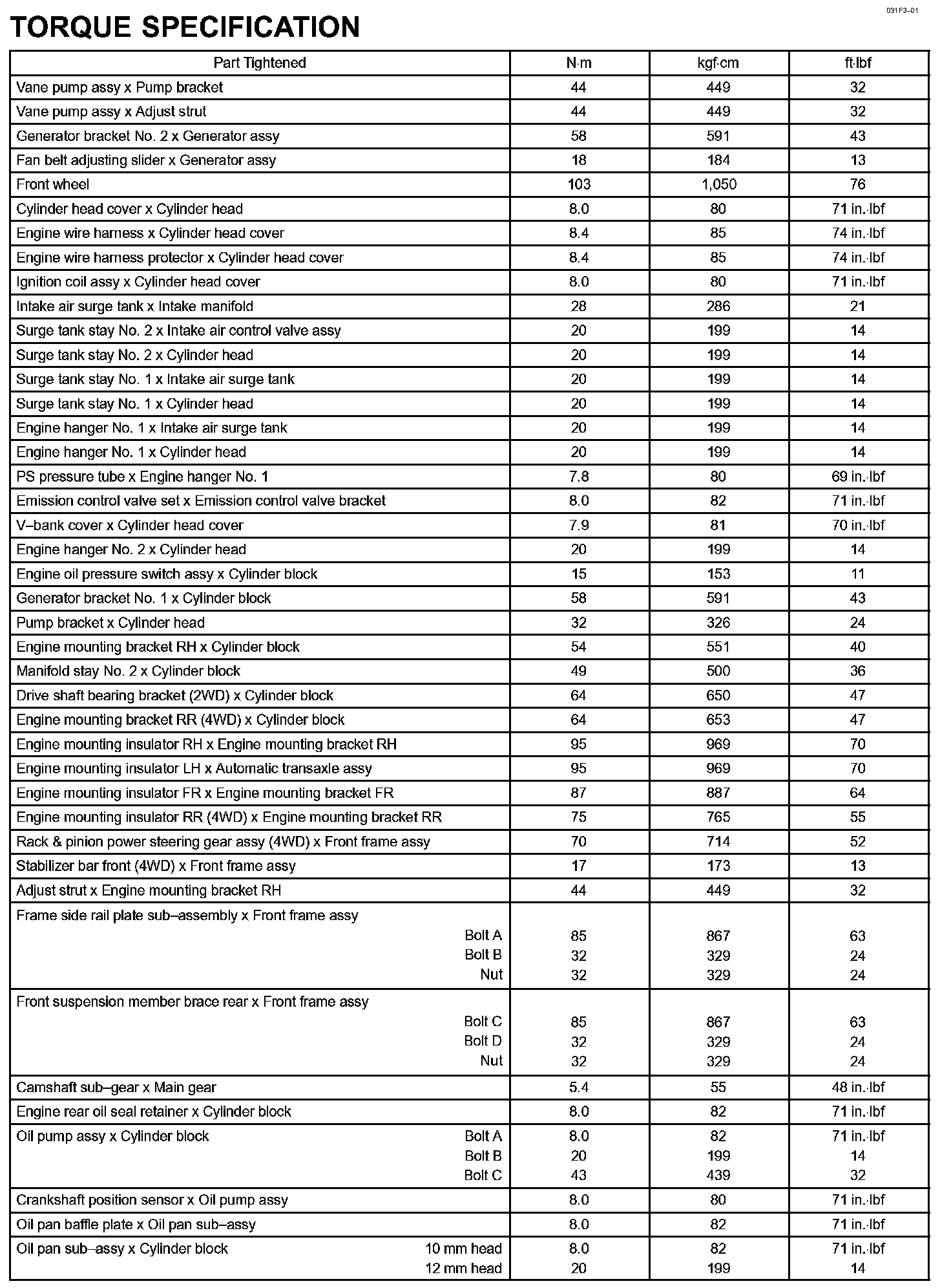 Engine Mechanical - Torque Specification Part 3: