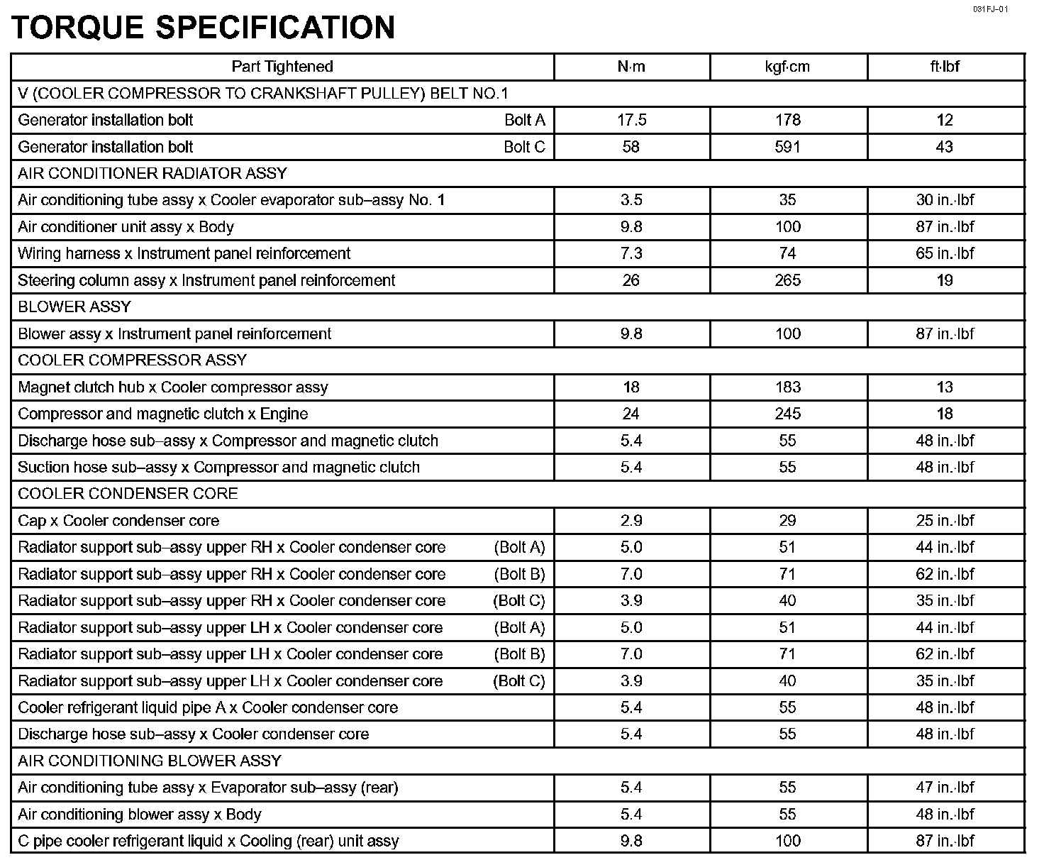 Heater & Air Conditioner - Torque Specification: