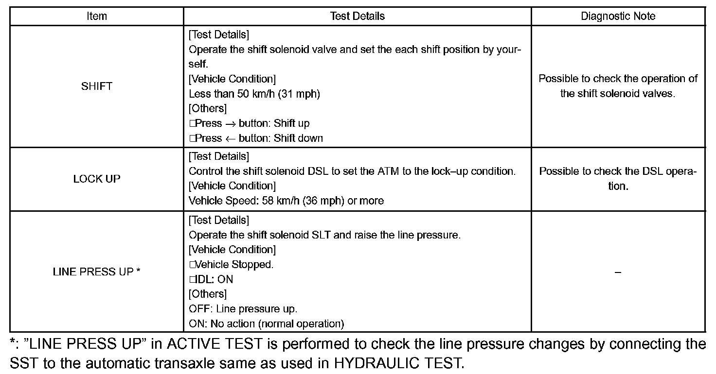HINT: The pressure values in ACTIVE TEST and HYDRAULIC TEST are different from each other.