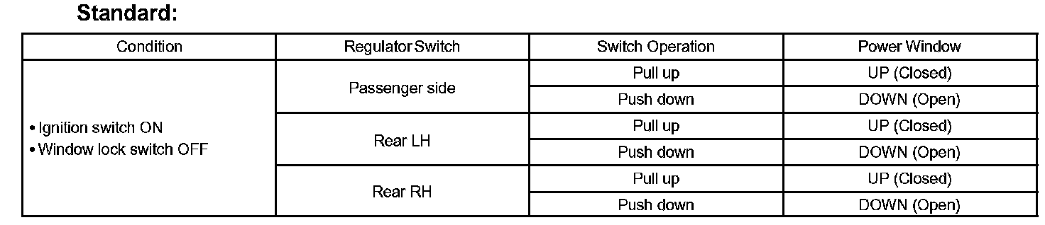 b. Check that the passenger side power window and slide door power windows can be operated using each power window regulator switch.