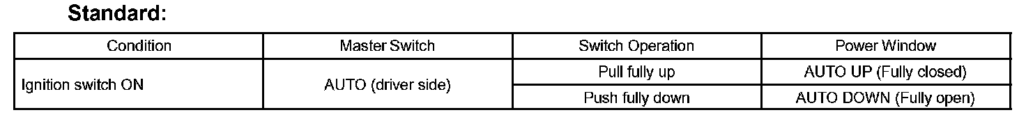 a. Check that the driver side power window can be operated using the AUTO (driver side) switch of the power window master switch.