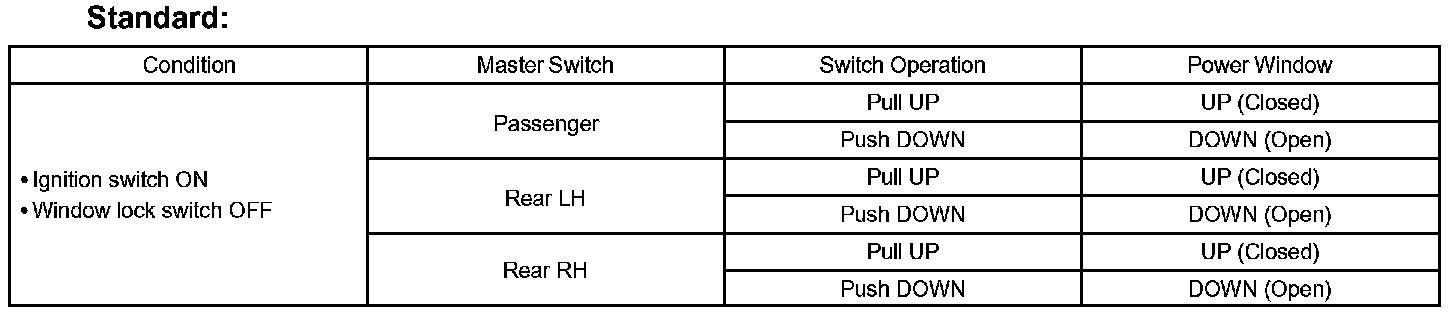 a. Check that the passenger side power window and slide door power windows operation is disabled when the window lock switch of the power window master switch is pressed.