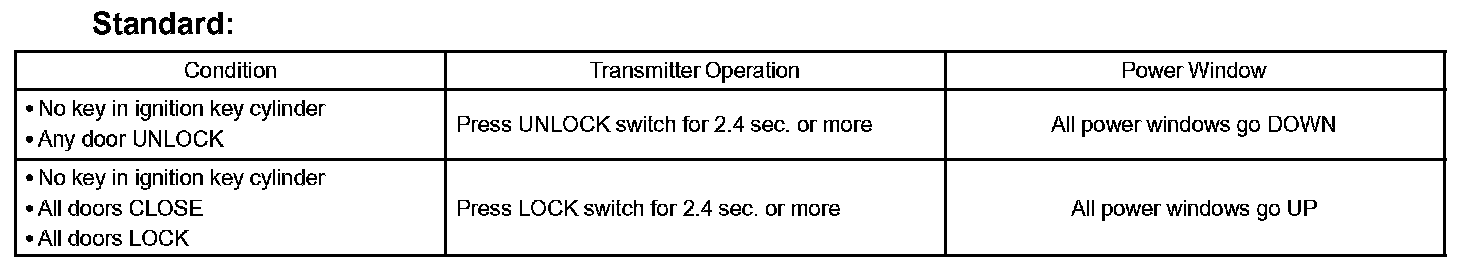 a. Check that the front power windows and slide power windows operate as follows when operating the transmitter.