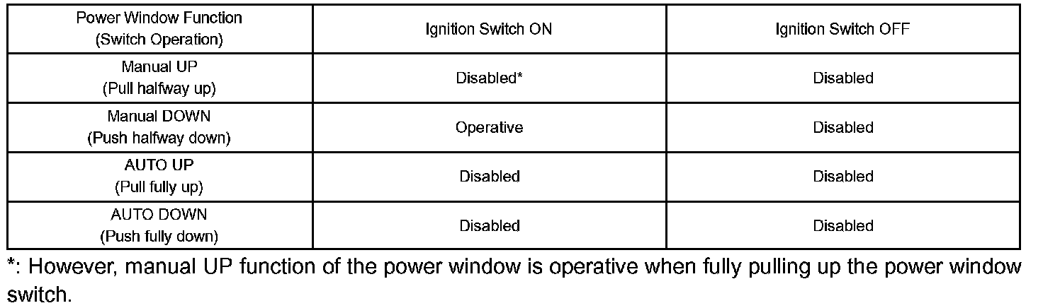 a. If there is a malfunction in the pulse sensor of the power window motor, the power window function will be restricted to partial operation.