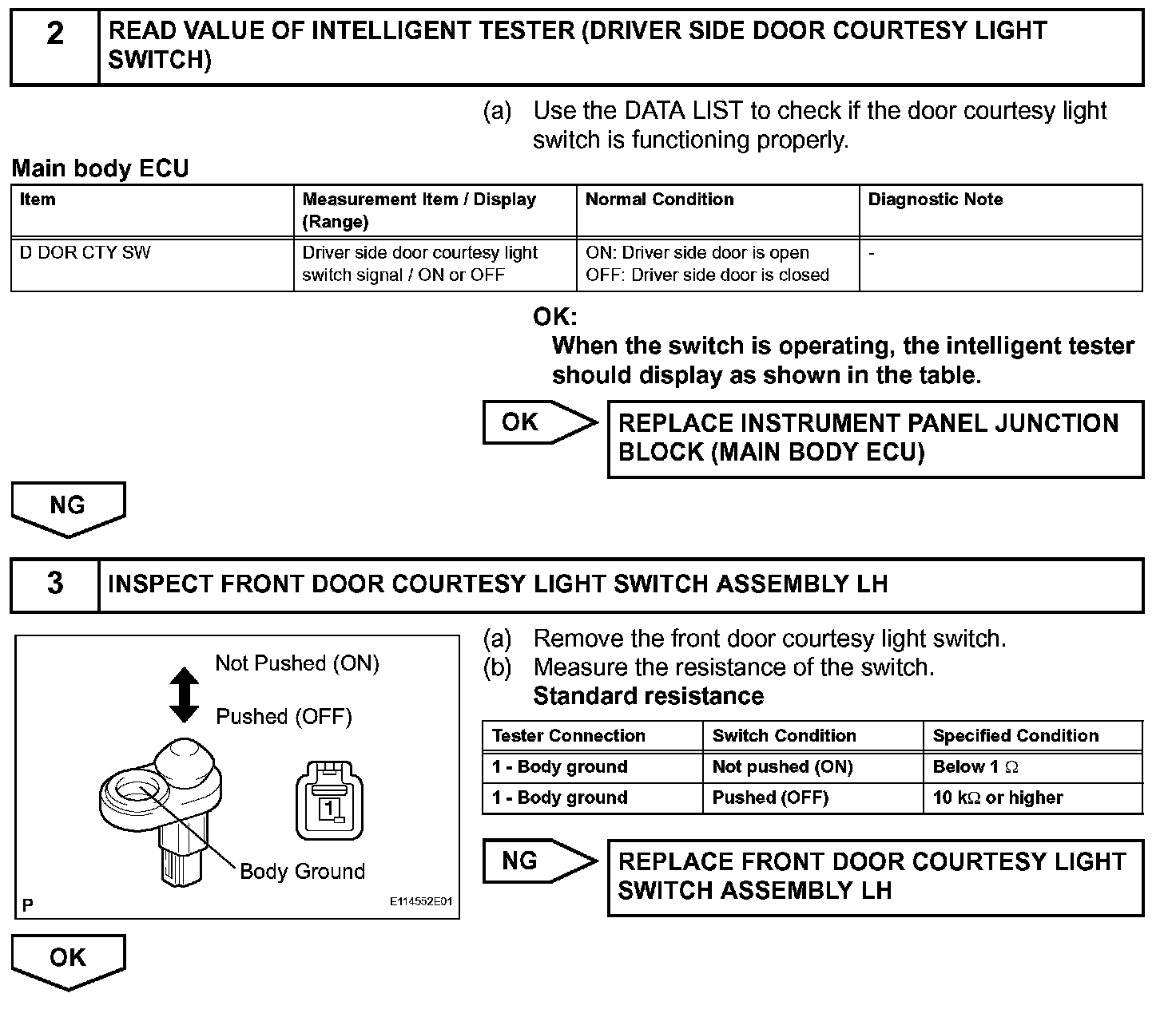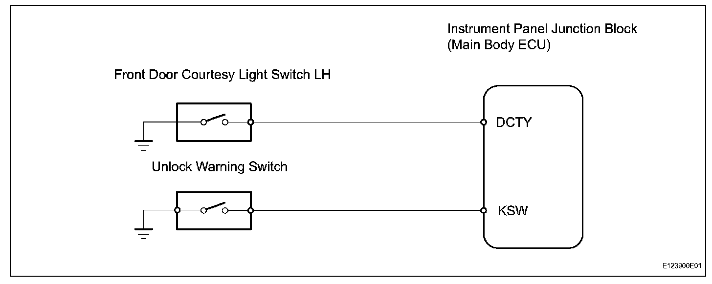 When the key is in the ignition key cylinder or the door courtesy light ON signal is output to the main body ECU, performing the door lock operation with the lock switch does not lock the door.