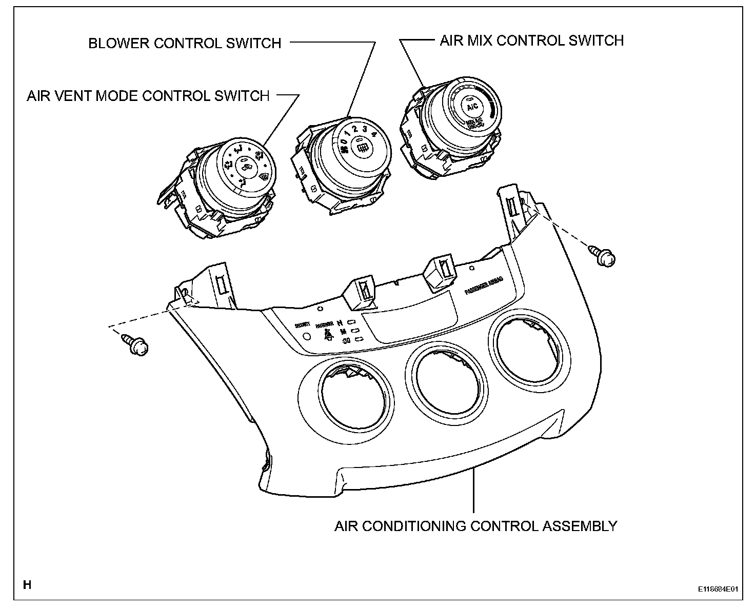 1. INSTALL AIR VENT MODE CONTROL SWITCH